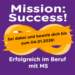 Sie arbeiten oder engagieren sich im Bereich Multiple Sklerose oder leben selbst mit der Erkrankung? Dann interessiert Sie das digitale Empowerment-Programm „Mission:Success! Erfolgreich im Beruf mit MS“ des Hildegardis-Vereins. Bei Mission:Success! begleiten wir 24 Personen ein Jahr lang dabei, ihre Stärken sichtbar zu machen, neue Strategien für den Job zu entwickeln und ein starkes Netzwerk von Menschen in ähnlicher Situation aufzubauen.